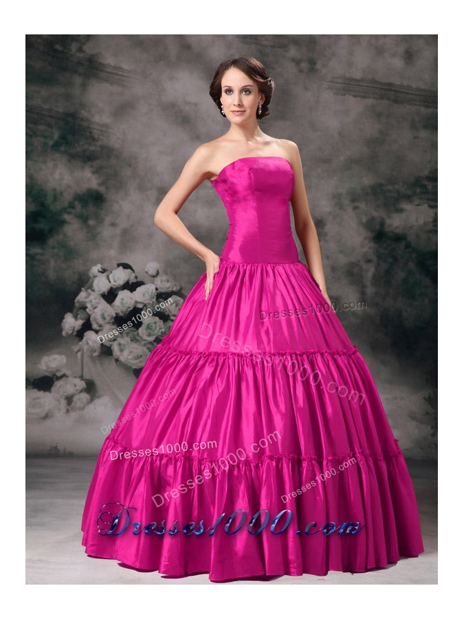 Hot Pink Ball Gown StraplessQuinceanera Dress with Taffeta Ruched