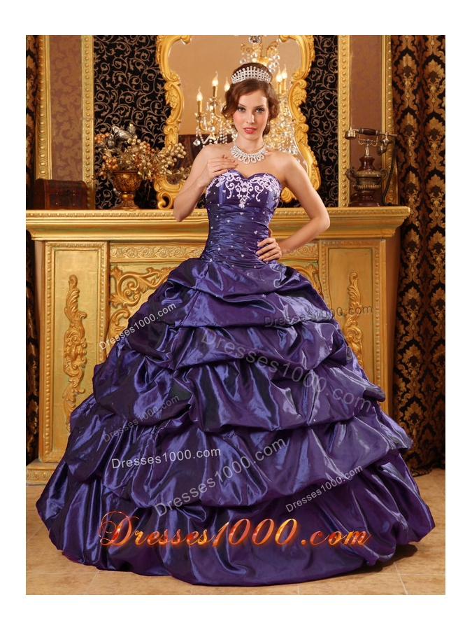 Fashionable Sweetheart Taffeta Appliques Purple Sweet 16 Dresses