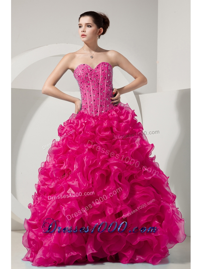 Hot Pink Princess Sweetheart Quinceanera Dresses with Beading
