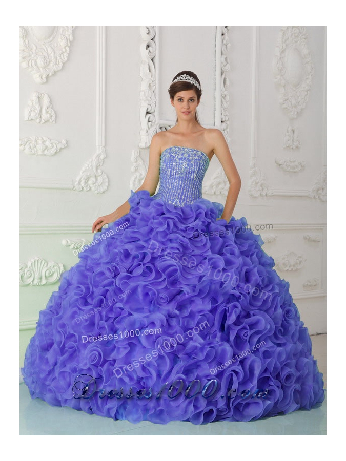 Organza Purple Strapless Quinceanera Dress with Ball Gown Beading