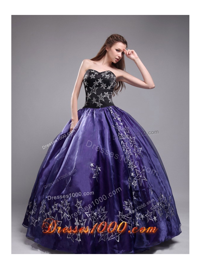 Elegant Purple Sweetheart Orangza Quinceanera Gowns with Embroidery