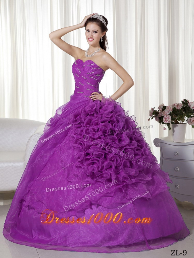 Purple Sweetheart Beading and Ruffles Quinceanera Gowns with Ruching
