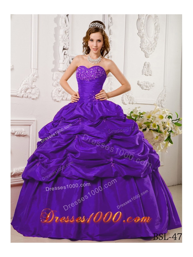 Purple Sweetheart Appliques Sweet Sixteen Dresses with Pick-ups and Appliques