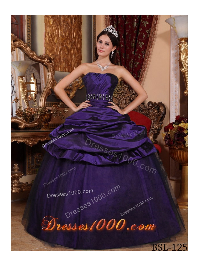 Purple Strapless Taffeta Beading Quinceanera Gowns with Pick-ups
