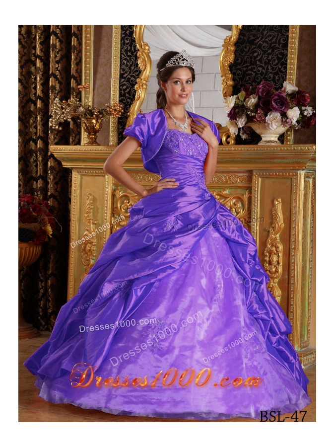 Purple Princess Sweetheart Appliques and Pick-ups Quinceanera Dress