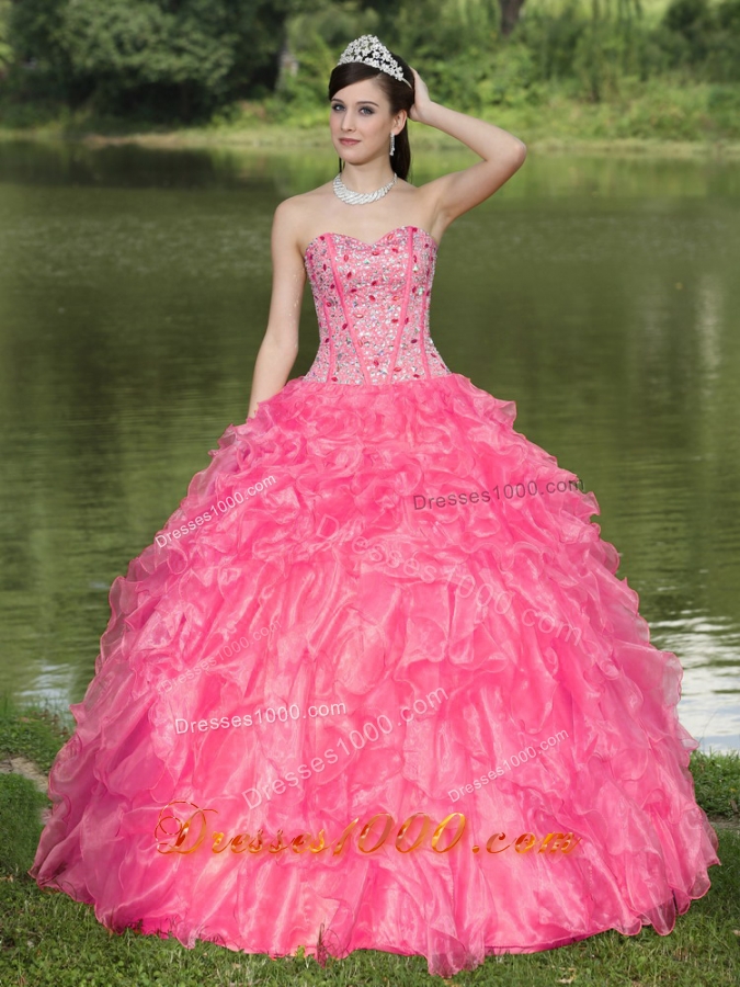 Hot Pink Sweetheart 2014 Quinceanera Gowns With Beaded Ruffles Layered