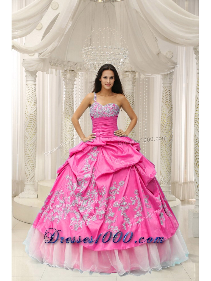 Appliques Decorate Quinceanera Dress With Hot Pink One Shoulder