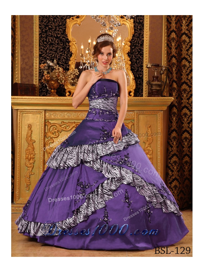 Purple Ball Gown Strapless Embroidery Sweet 16 Dresses with Appliques