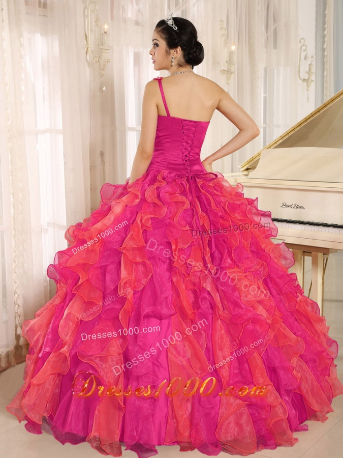 Beaded Decorate Ruffles One Shoulder Quinceanera Dress for Custom Made