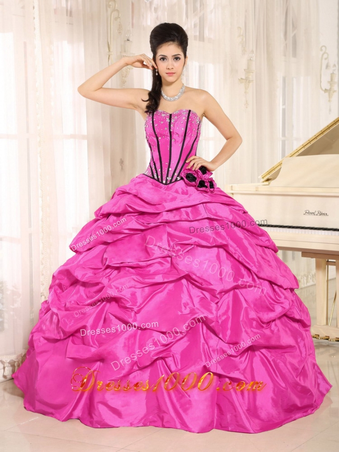 Hot Pink Sweetheart Pretty Quinceanera Dresses With Beading
