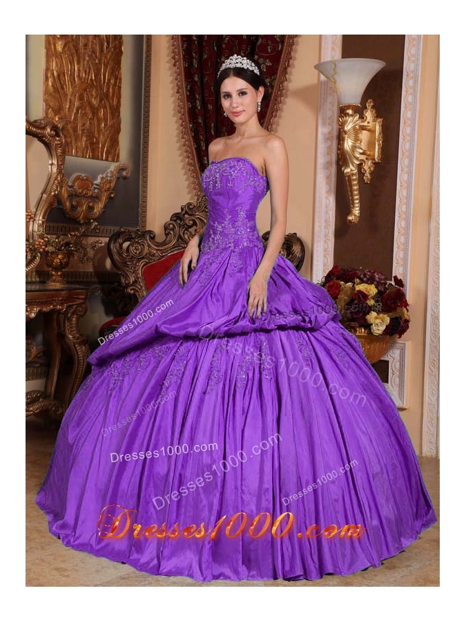 Purple Ball Gown Strapless Beading 2014 Quinceanera Dress