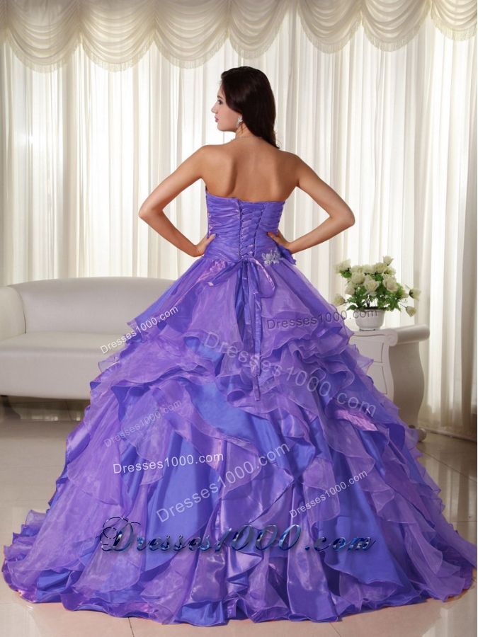 Purple Ball Gown Sweetheart Appliques and Ruffles Quinceanera Dress