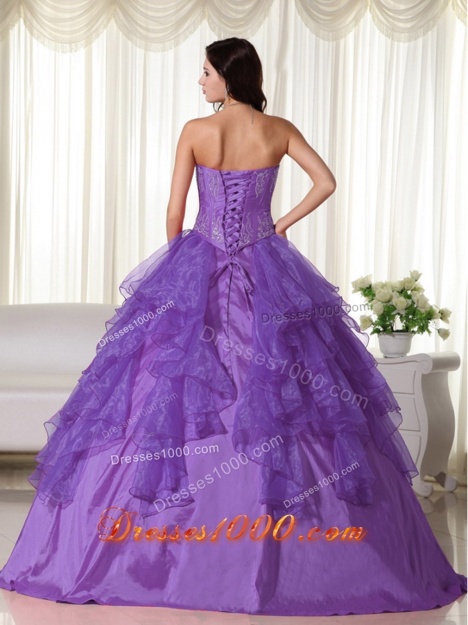 Informal Purple Ball Gown Sweetheart Ruffles Quinceanera Dress