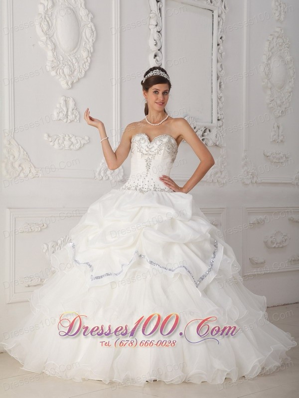 White Quinceanera Dress Sweetheart Organza Taffeta Beading