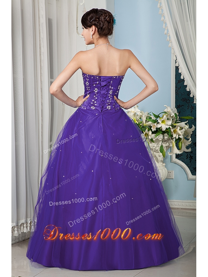 Purple A-line Strapsless Dresses Of 15 with Beading for Girl