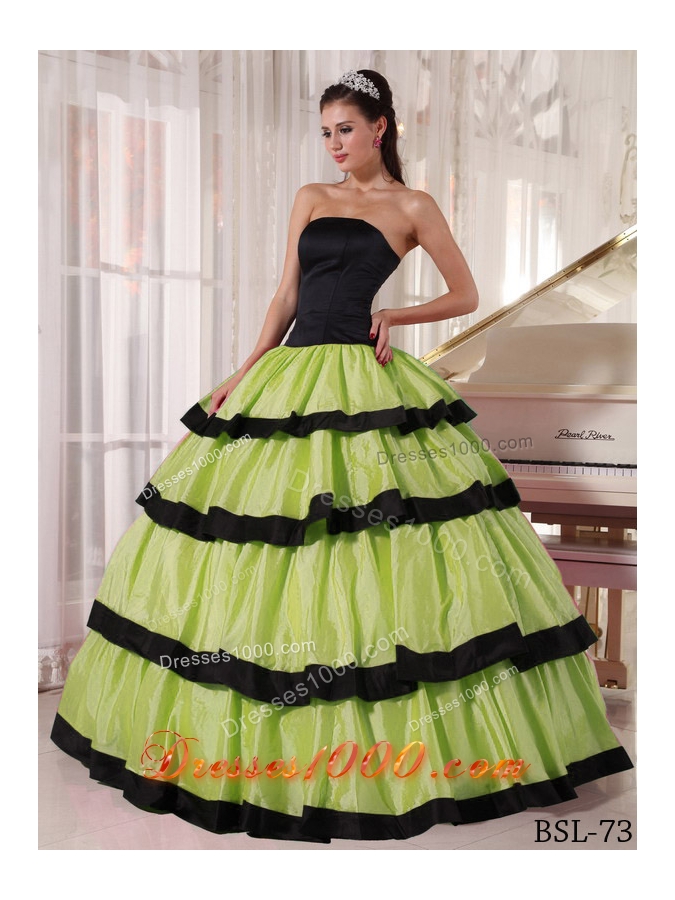 Olive Green and Black Strapless Quinceanera Dress with Layers