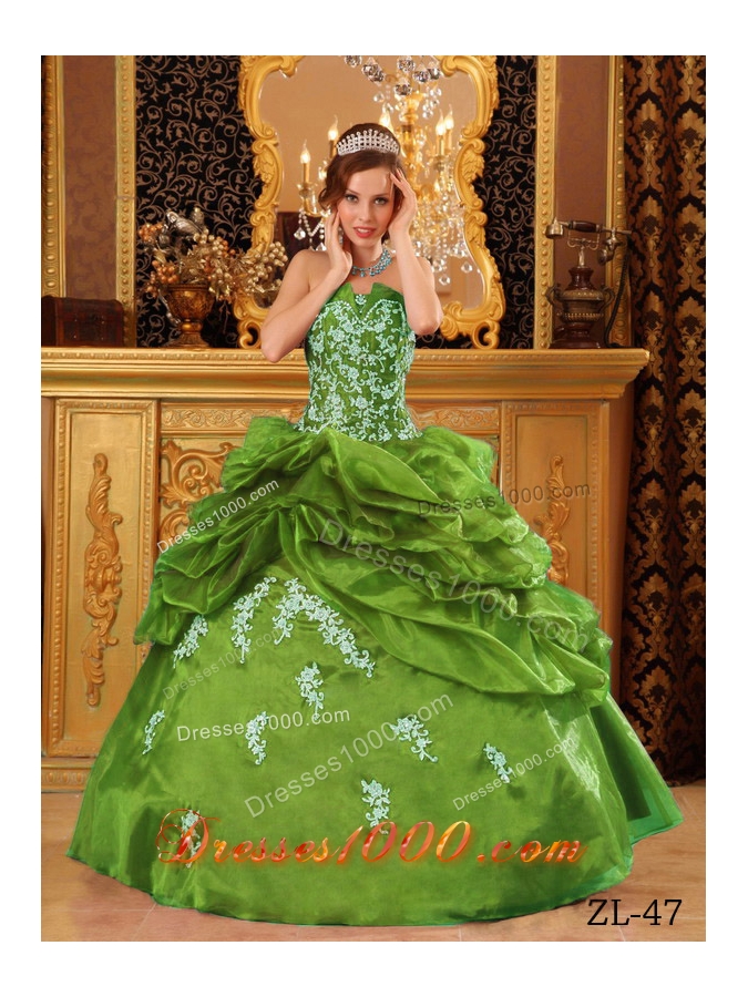 Strapless Organza Sweet 16 Dresses with Pick-ups and Appliques