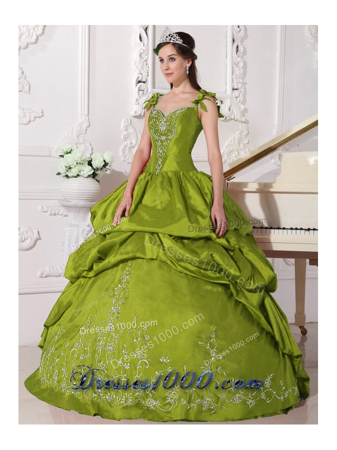 Olive Green Straps Taffeta Quinceanera Gowns with Embroidery