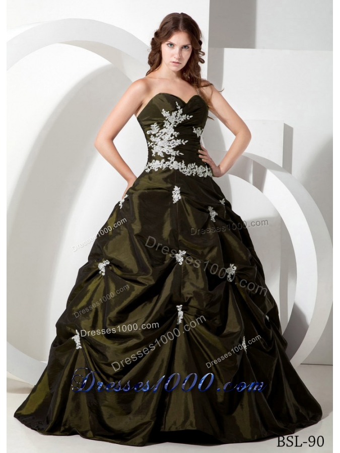 Princess Sweetheart Taffeta Sweet 15 Dresses with Appliques