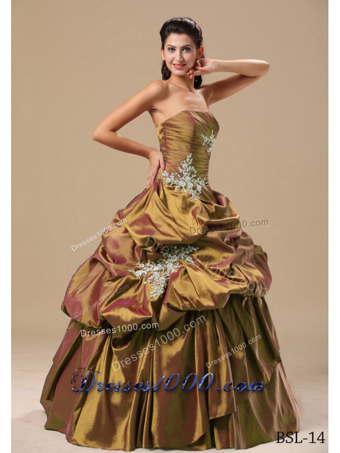 Discount Appliques Strapless Pick-ups Dresses For Quinceaneras