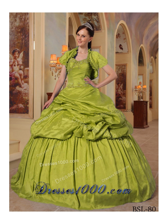 Olive Green Sweetheart Taffeta Quinceanera Dress with Beading