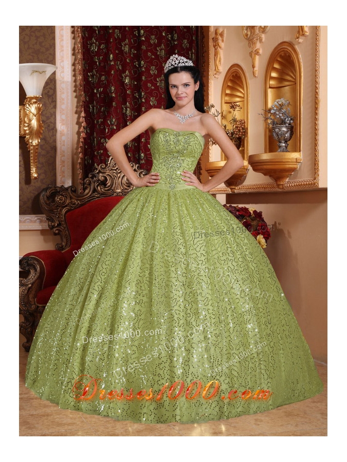 Olive Green Puffy Sweetheart Sweet 15 Dresses with Sequins