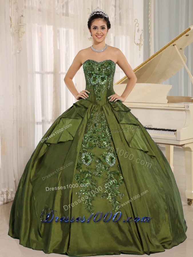 Pretty Olive Green Embroidery Quinceanera Dress with Sweetheart