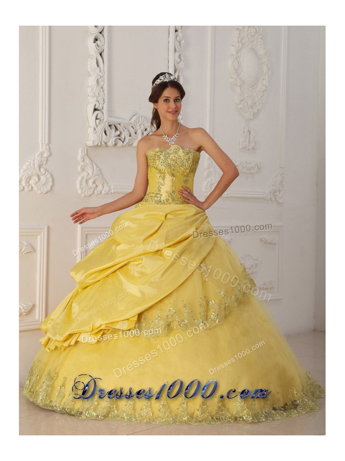 2014 Yellow Princess Sweetheart Beading Quinceanera Dress with Lace
