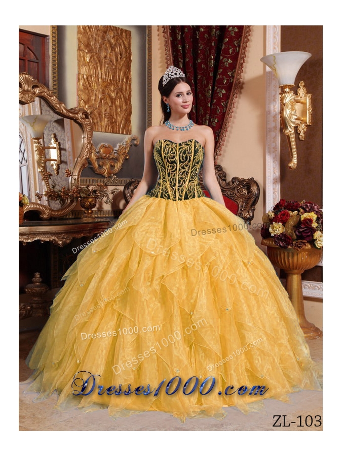 Elegant Gold Puffy Sweetheart Embroidery 2014 Quinceanera Dress with Beading