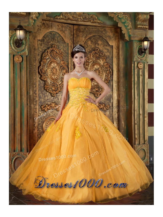 2014 Orange Quinceanera Dress with Appliques Puffy Sweetheart