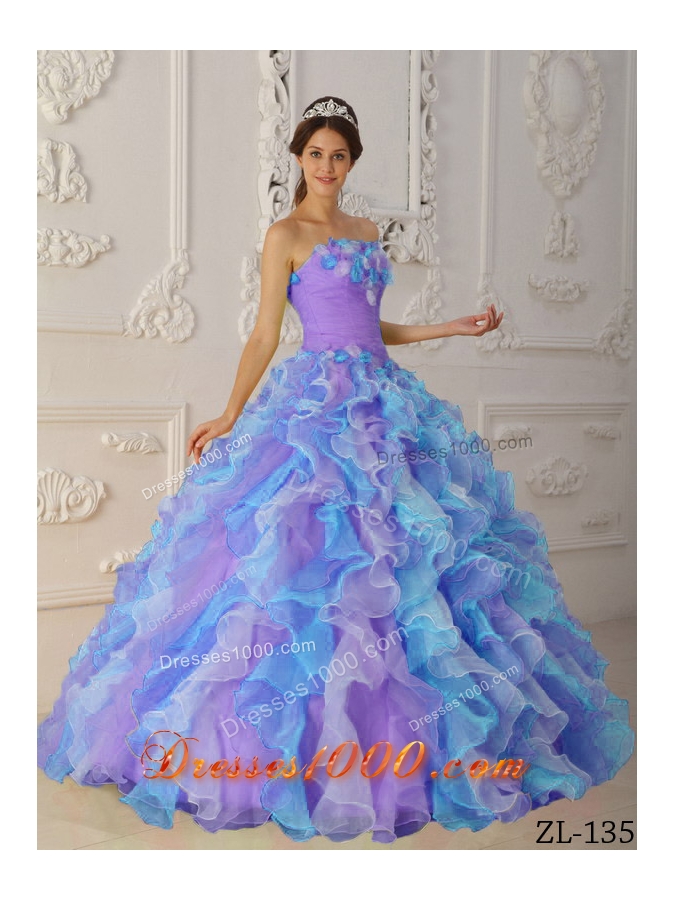 Modest Multi-Color Puffy Strapless Ruffles Quinceanera Dresses for 2014