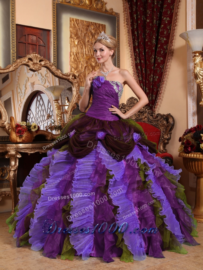 Pretty Multi-color Puffy Appliques and Beading Quinceanera Dresses