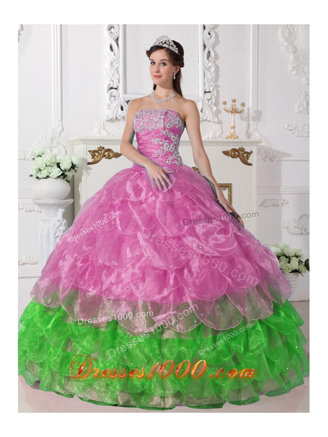 Colorful Puffy Strapless 2014 Appliques Quinceanera Gowns with Beading
