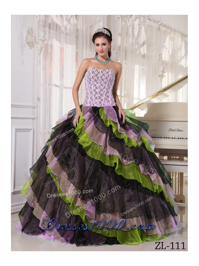 Perfect Multi-color Puffy Strapless Appliques and Beading for 2014 Quinceanera Dresses