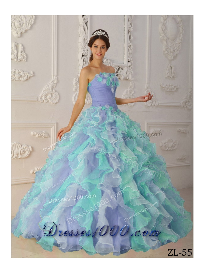 Elegant Multi-Color Puffy Strapless Ruffles Quinceanera Dress for 2014