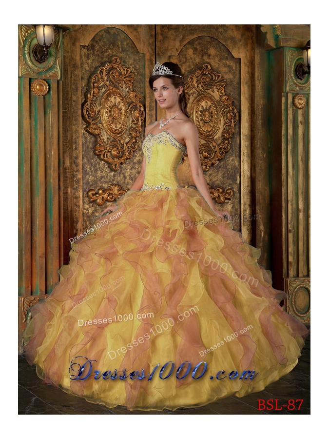 Luxurious Quinceanera Dresses in Yellow Princess Sweetheart Ruffles for 2014