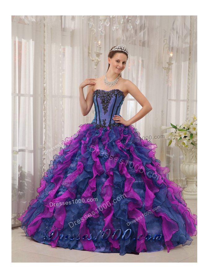 Princess Multi-colored Sweetheart Appliques Quinceanera Dresses for 2014
