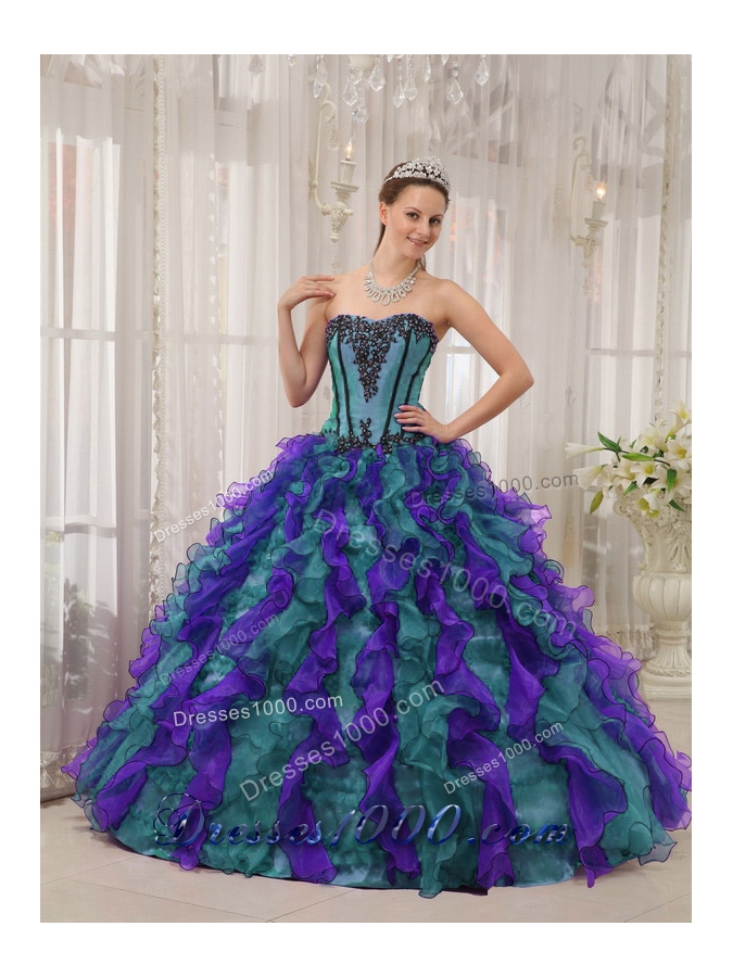 2014 Cute Appliques Quinceanera Dresses in Multi-colored Puffy Sweetheart