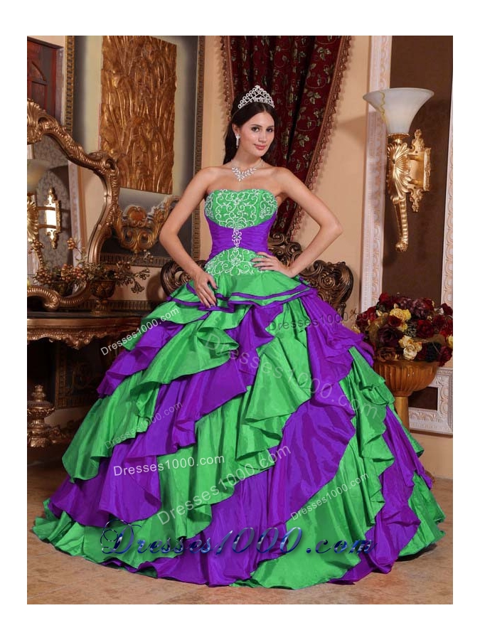 Puffy Embroidery Quinceanera Dresses in Multi-color Strapless
