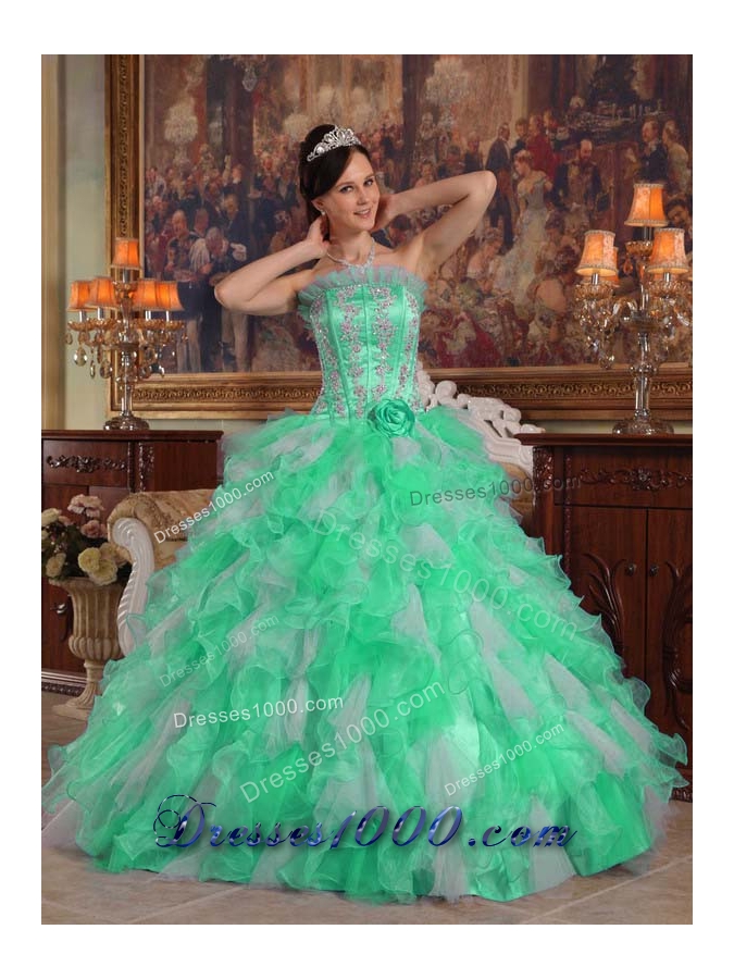 2014 Spring Puffy Strapless Appliques Quinceanera Dress for 2014