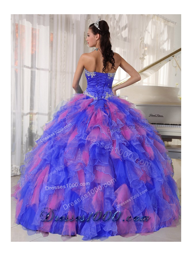 Pretty Appliques and Flowers Organza Quinceanera Dresses for Sweet 16