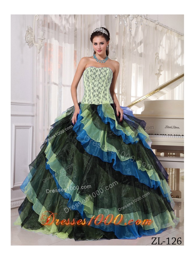 Multi-color Puffy Strapless Appliques and Beading 2014 Quinceanera Dresses
