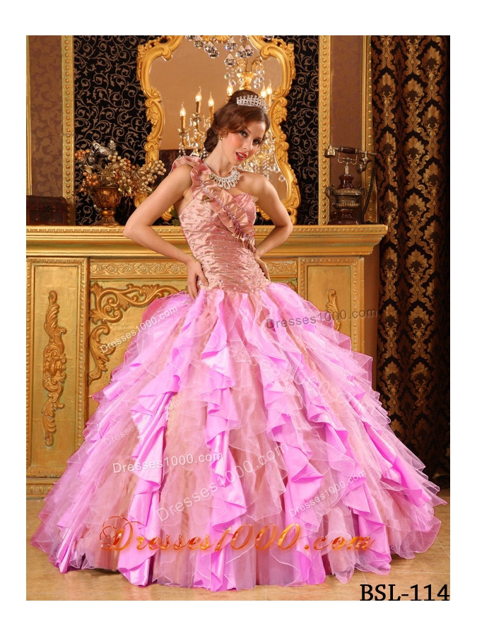 2014 Perfect Puffy One Shoulder Beading and Ruffles Quinceanera Dresses