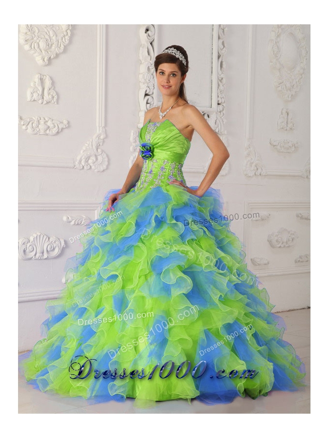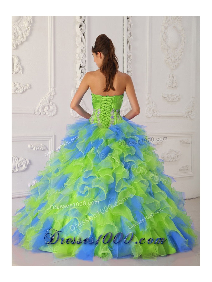 Multi-color Puffy Strapless Appliques Quinceanera Dresses for 2014