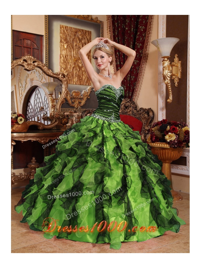 2014 Multi-Color Puffy Sweetheart Beading and Ruffles Quinceanera Dresses