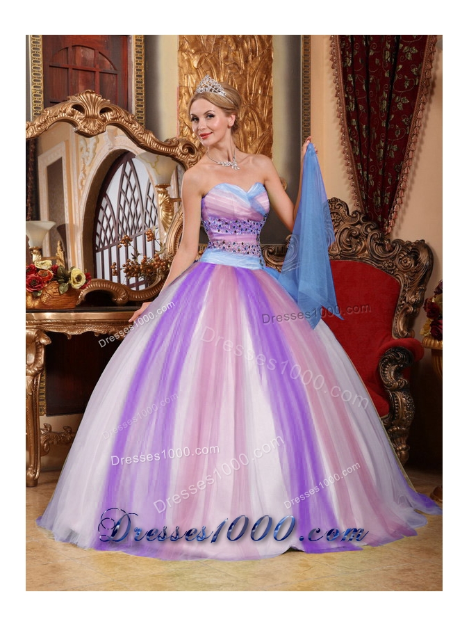 Just be a fairy maiden in this colorful ball gown. Fabulous is the only word came to my mind when I saw it. The dress features A sweetheart neckline with some colorful beadings accented on the bodice.several different colors of tulle which make the dress like a rainbow falls freely to complete the look.