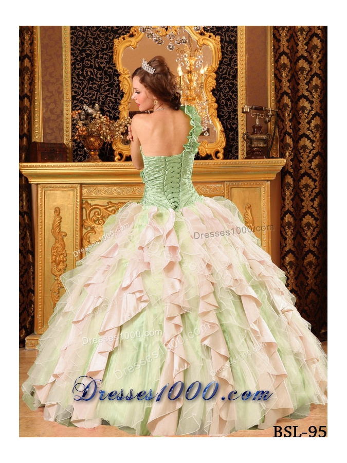 2014 Multi-Color Puffy One Shoulder Beading and Ruffles Quinceanera Dresses