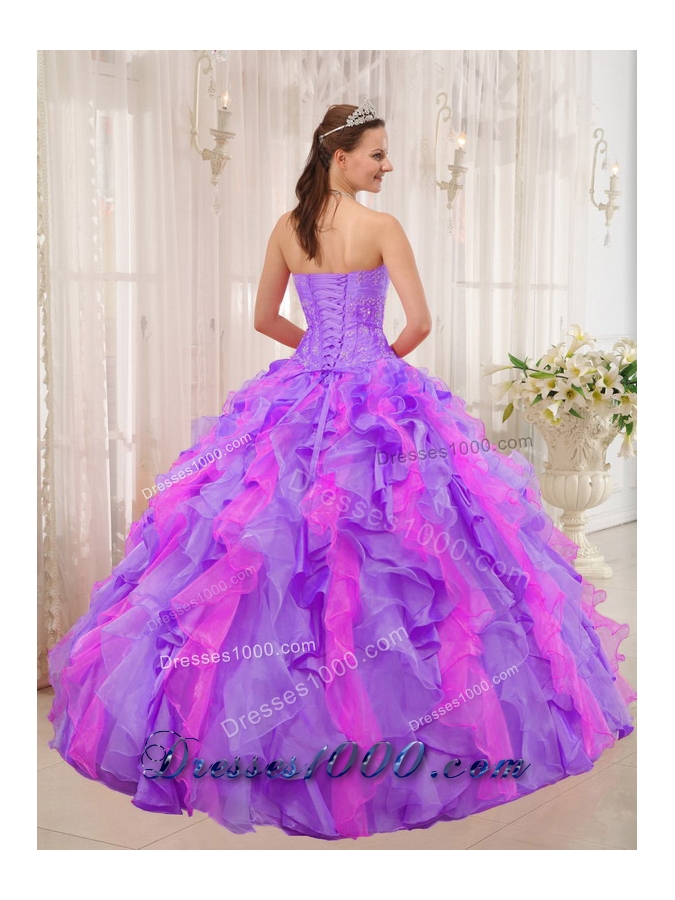2014 Multi-colored Puffy Sweetheart Ruffles and Appliques Quinceanera Dresses