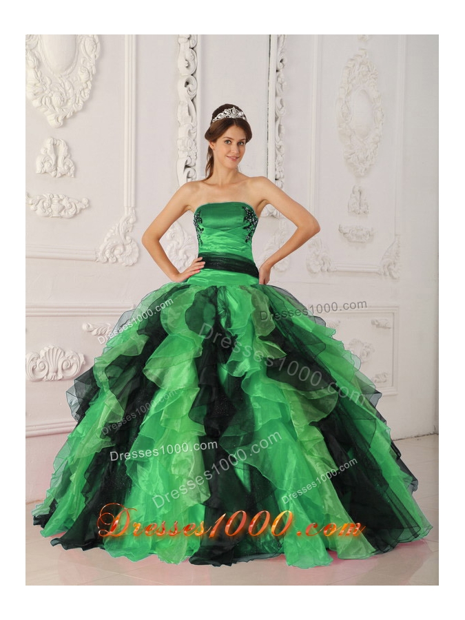 2014 Lovely Multi-color Puffy Strapless Appliques and Ruffles Quinceanera Dress
