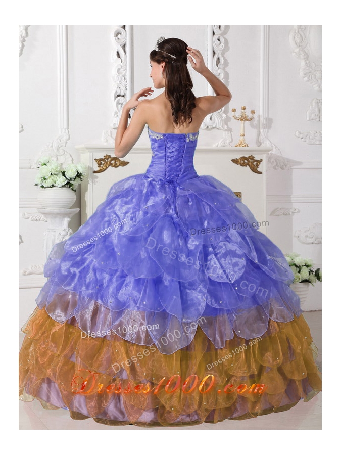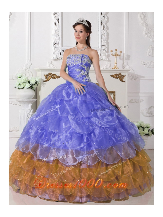 Puffy Strapless 2014 Appliques Quinceanera Dress with Ruffled Layers